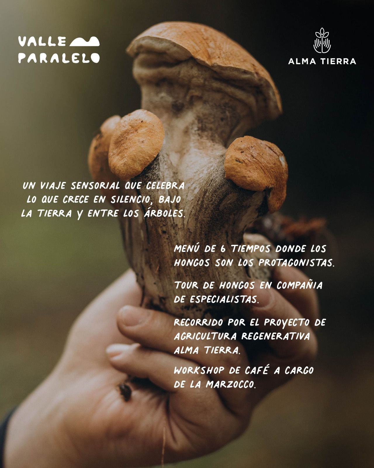 - Incluye: Menú Family Style + Tour de hongos por el bosque + Workshop de café por La Marzocco